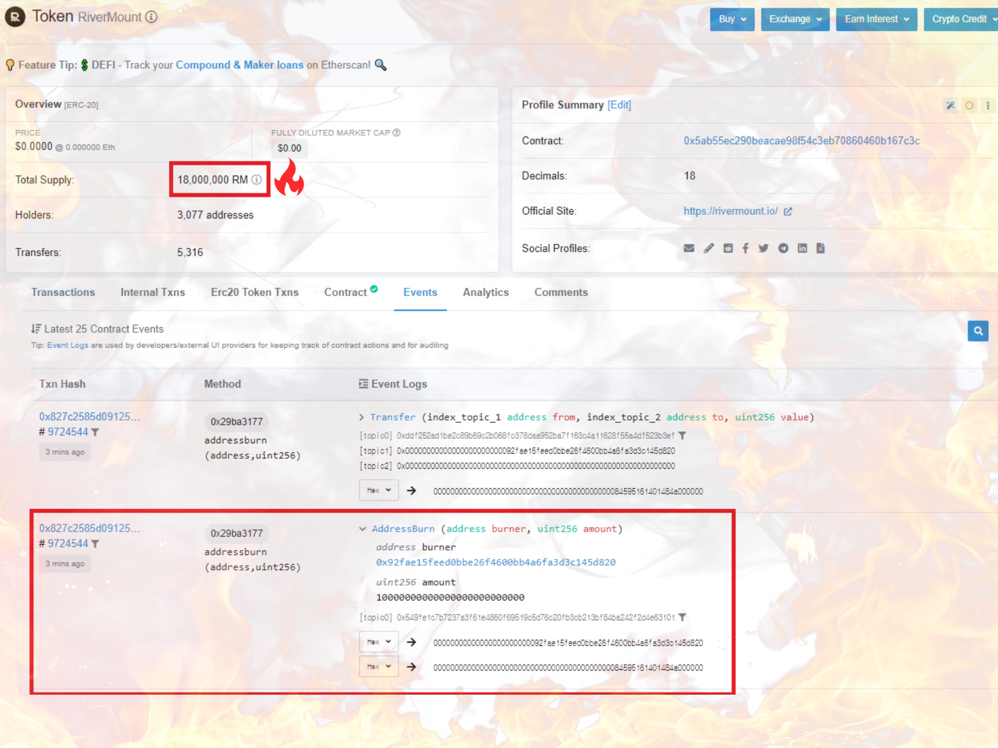 Rivermount RM Token Burn 30%