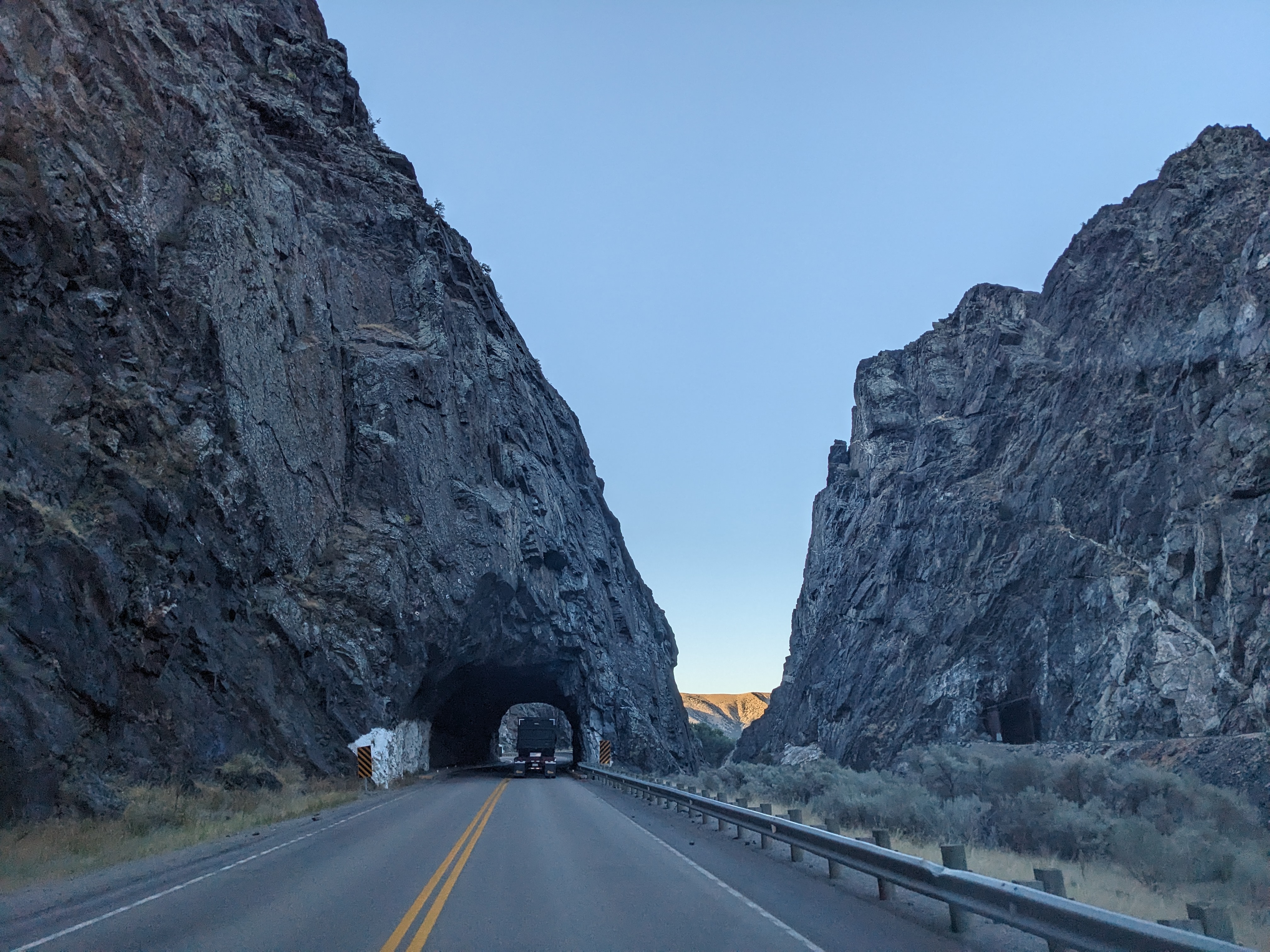 I do love driving through a good tunnel in a mountain. We found these tunnels as we drove from Thermopolis to Jackson hole and I was quite surprised. I think there was a total of three although I only got pictures of one or two. One I think was pretty small and no one was able to get their camera ready and get a good shot.