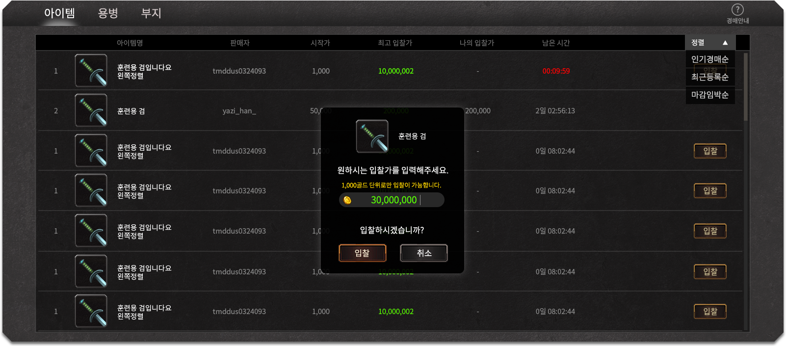 아래는 저희 ROR게임 인게임 예시화면 입니다.