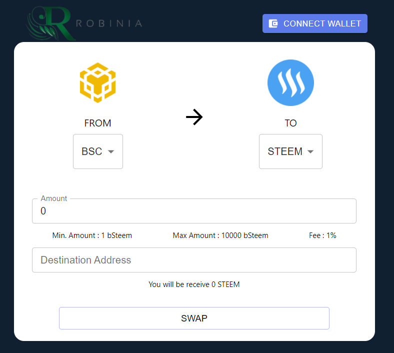 Robinia Swap supports BSTEEM-BNBLP Farm and BSTEEM's sole pool, so if you want to steak STEEM, we recommend you to swap STEEM to BSTEEM through the cross-chain bridge and then staking.