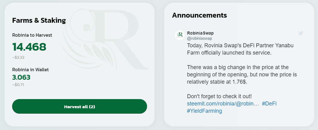 There was some new partnership or development with YANABU defi or something and the RBS token price went up a little bit so this week was a little better than last week.