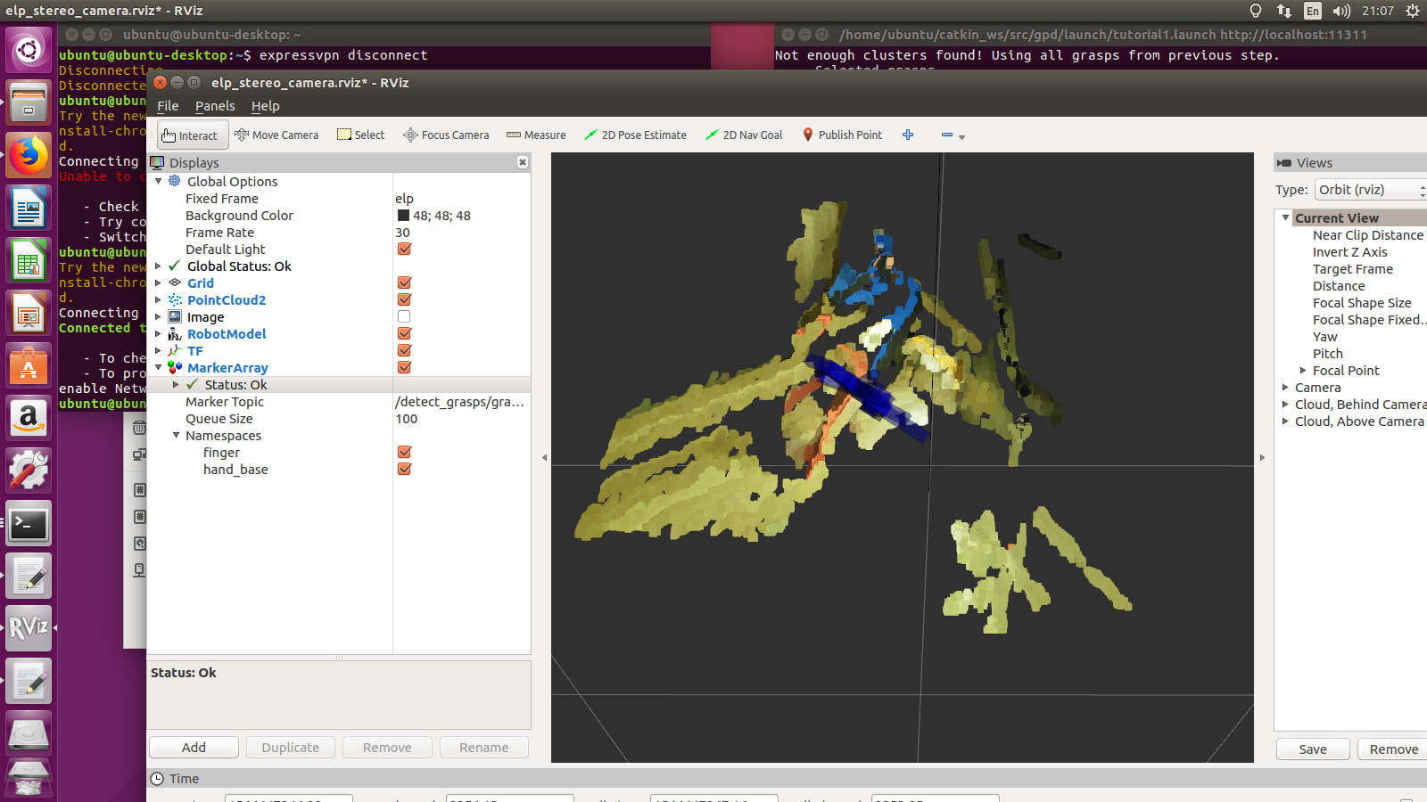 I will get better screenshots for my next article. Right now I got computer vision to work and can get valid grasp poses and then convert them from camera frame to robot frame. The problem I'm battling right now is IK for my 5DOF arm.