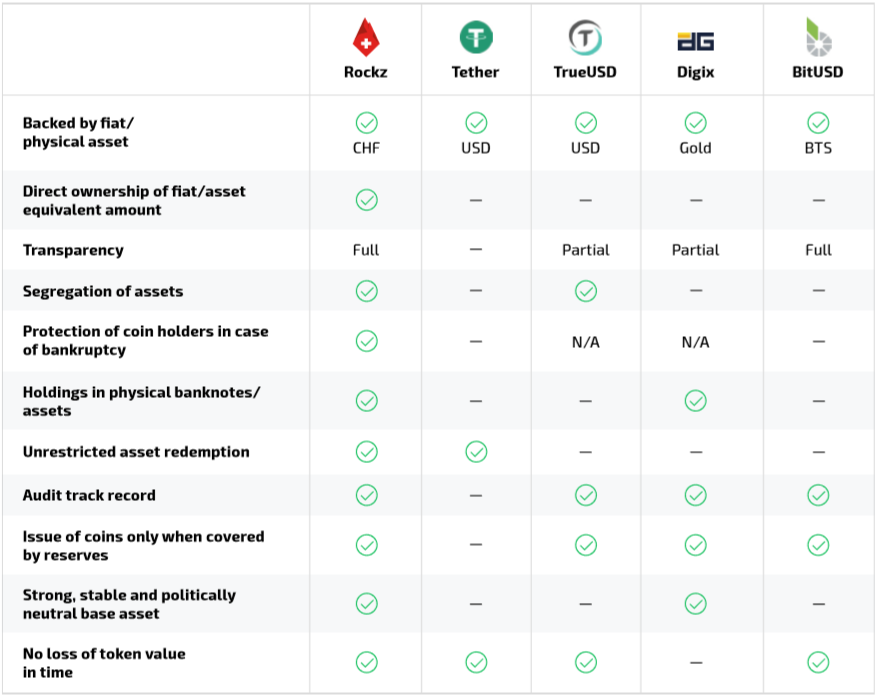 Knowing the Importance of stable coins I will introduce to you a new stable coin introducing ROCKZ “the world’s most bulletproof cryptocurrency. ROCKZ is not an ordinary stable coin unlike other fiat currency back stable coin which mostly back of the US dollar, ROCKZ is backed by the Swiss Franc (CHF) which is known by many traders and investor as the “safe haven” currency because of almost no visible inflation of CHF even on economic crisis it appreciates. CHF is one of the most traded currencies in the world and the strongest currency. Unlike other stable coins, ROCKZ features full transparency, full protection in case of bankruptcy, and direct ownership.