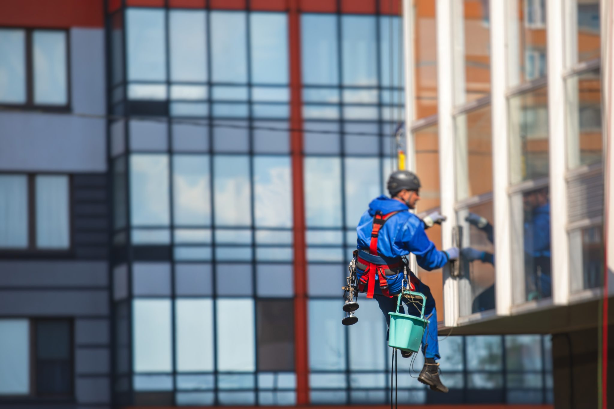 High-rise buildings often require specialized window cleaning methods. Rope access technicians can descend along the building façade to clean glass surfaces efficiently while ensuring safety.