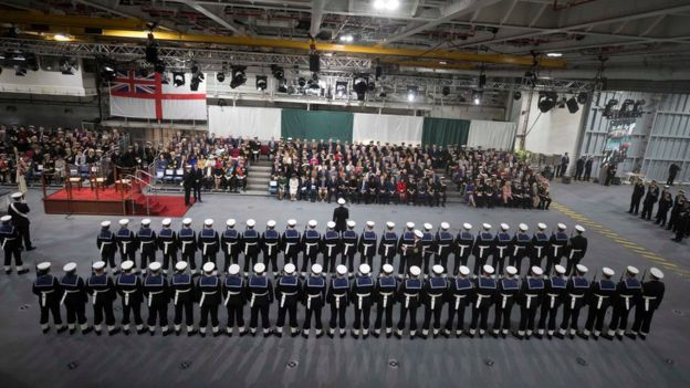 A second carrier, HMS Prince of Wales, is externally complete but it will take 18 months to fit its internal systems at Rosyth and it will be 2019 before the ship can begin sea trials.