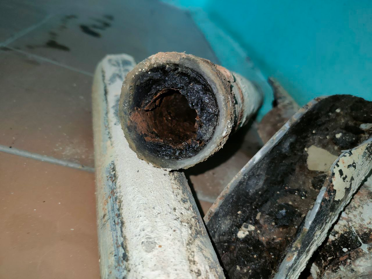 Итак, вот примерно таким образом выглядит просвет канализационного стояка, если его не менять 40 лет.