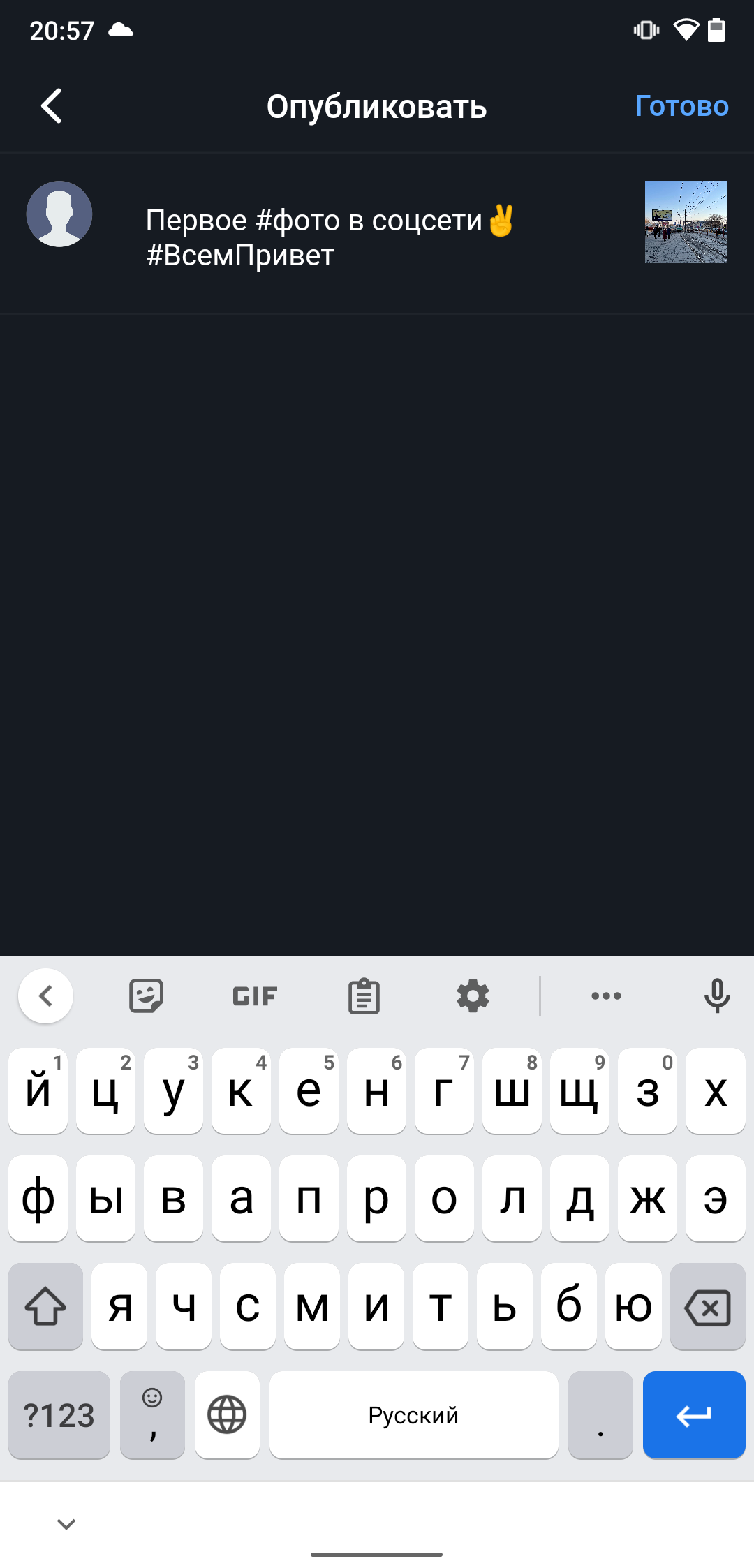 Как выяснилось в иготе, хэштеги можно было не добавлять. Они не поддерживаются. Оформление поста - полная копия такового в Instagram.
