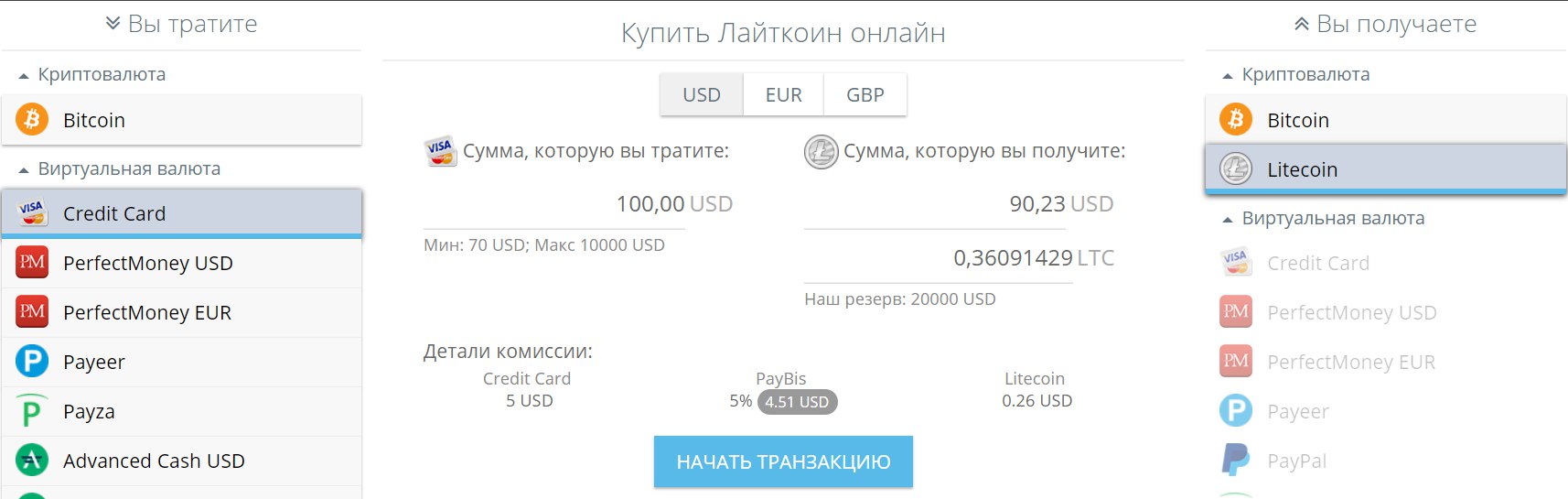 3) Выбираем Credit Card и Litecoin(потому что выгоднее)
