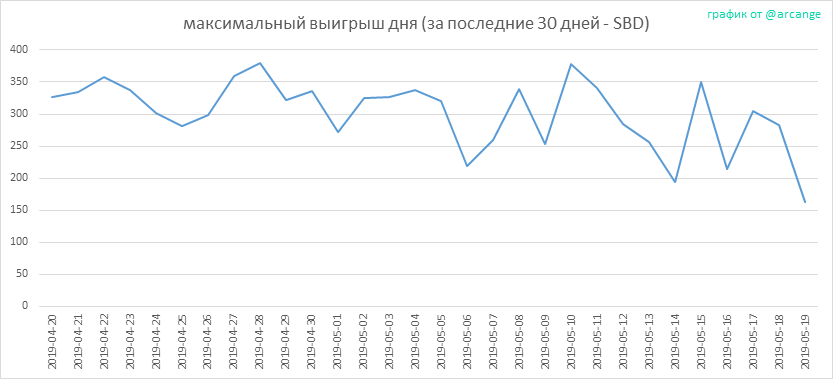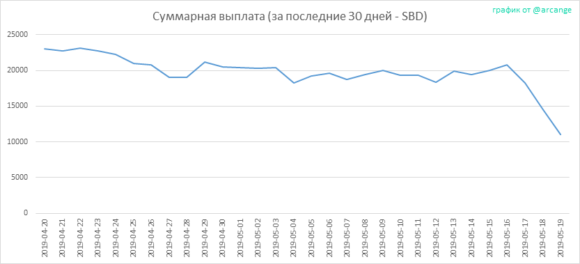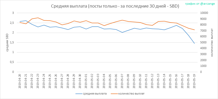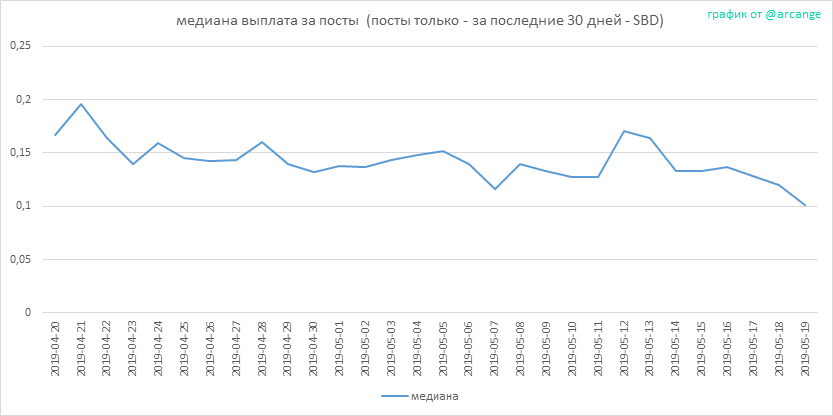 Этот график показывает ежедневную сумму выплат для всех постов и комментариев.