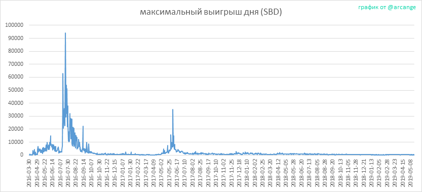 Эти графики показывают максимум выплат за пост (или комментарий) за каждый день.