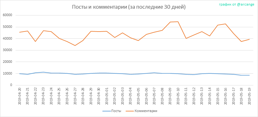 Эти графики показывают изменения количества постов и комментариев, с момента создания и в течение последних 30 дней.