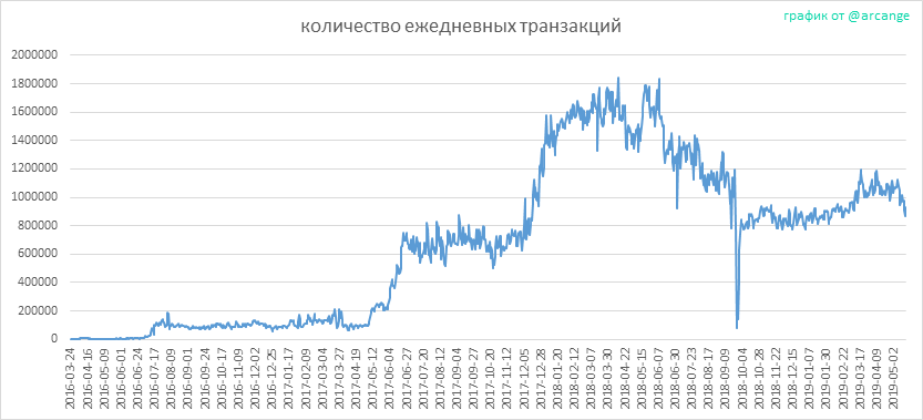 Этот график показывает количество ежедневных транзакции .Это дает представление о всей деятельности на блокчейн.
