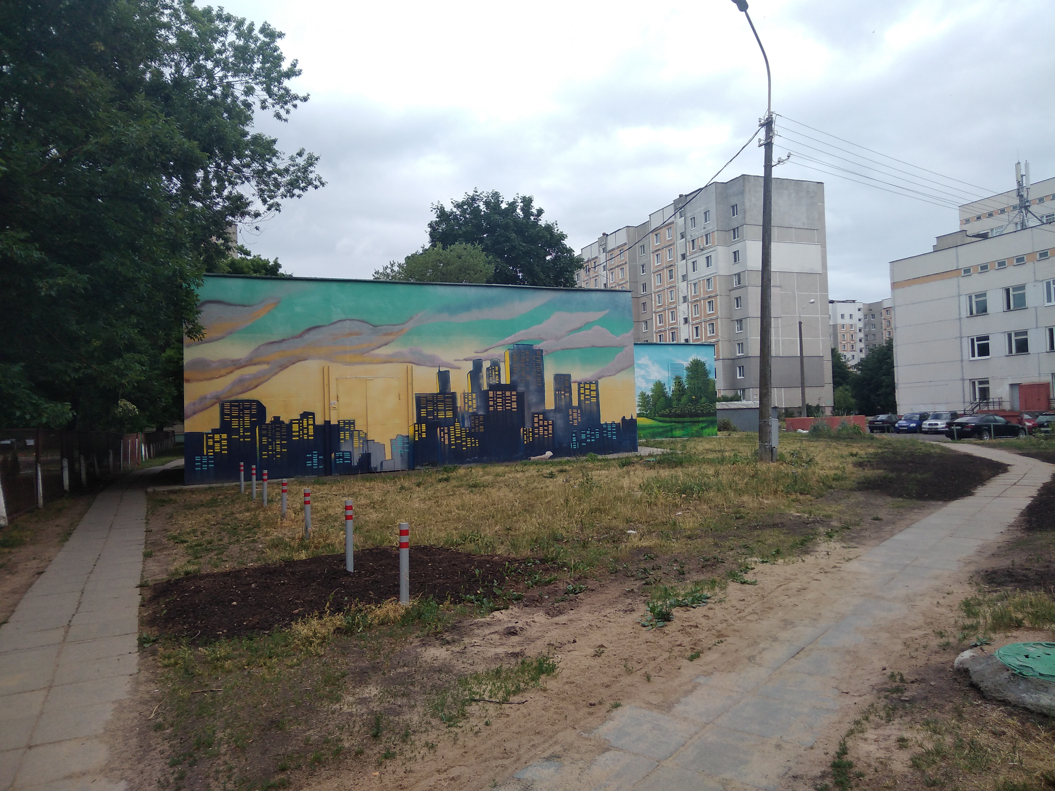 Есть в РБ такая добрая традиция: разрисовывать хоз.постройки во дворах. Телефонные будки, подстанции, ГРП...