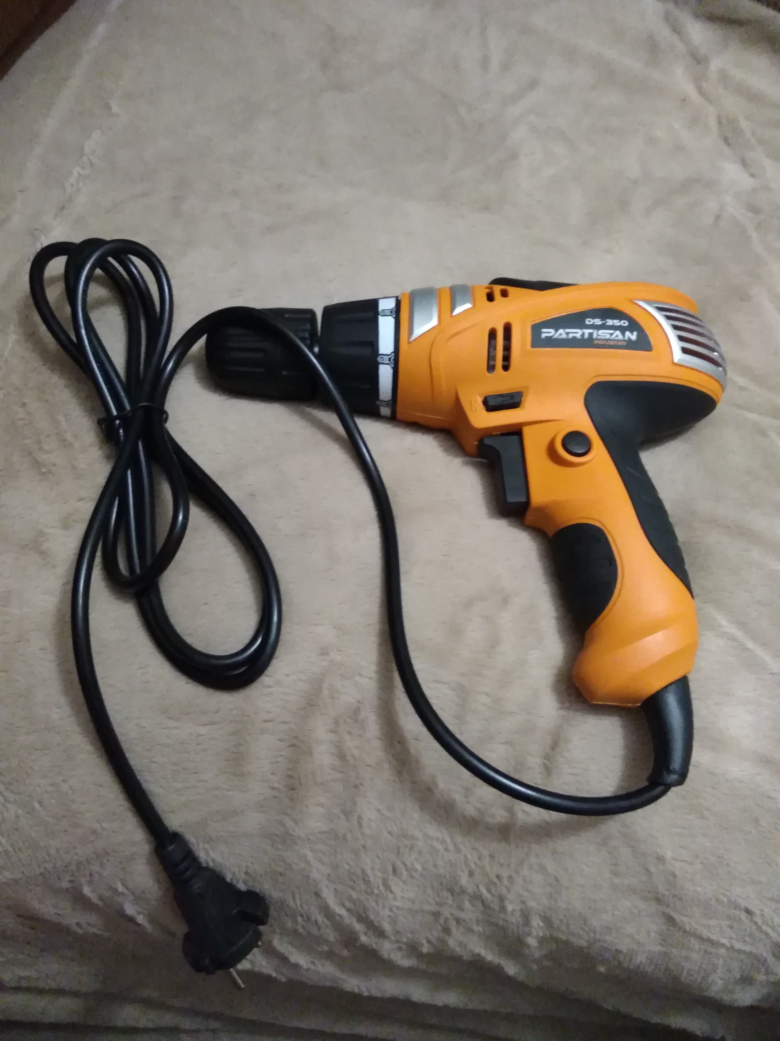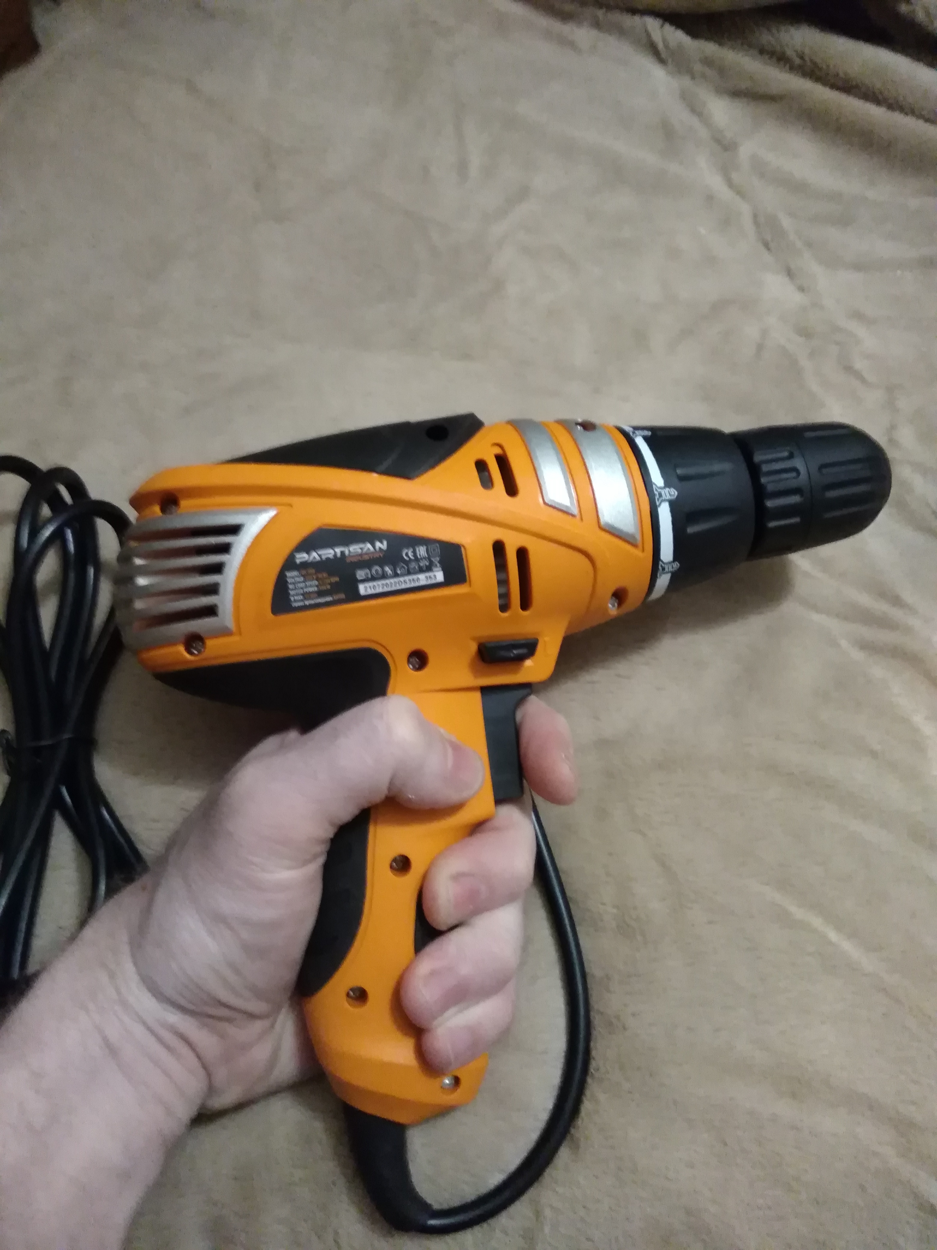 Предыдущий у меня был тоже самый дешевый шуруповёрт, Союз. Я им построил практически весь дом, за 4 года, и - нет, он не сдох. У него заклинил патрон и немного подломался пластик кнопок (переломавшийся шнур я не считаю дефектом). Патрон можно было поменять, но он стоит 12 рублей (а новый Партизан - 55!!!), и мне не охотя возиться с ним, если честно (я уже проделывал эту работу 2 месяца назад, с другим шуруповёртом), а вот кнопка - это серьёзнее, она цепляется и мешает включать-выключать.