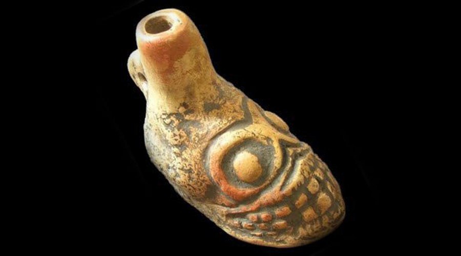 Отверстие свистка выточено особым образом, дуя в него, воин извлекал звуки похожие на крики воющего от боли человека.