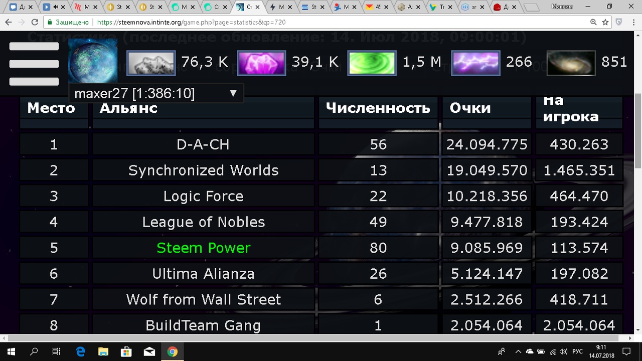 Альянс Steem Power прибавил почти 191к очков за сутки! И мы УЖЕ на 5 позиции в топе! И нас уже 80!