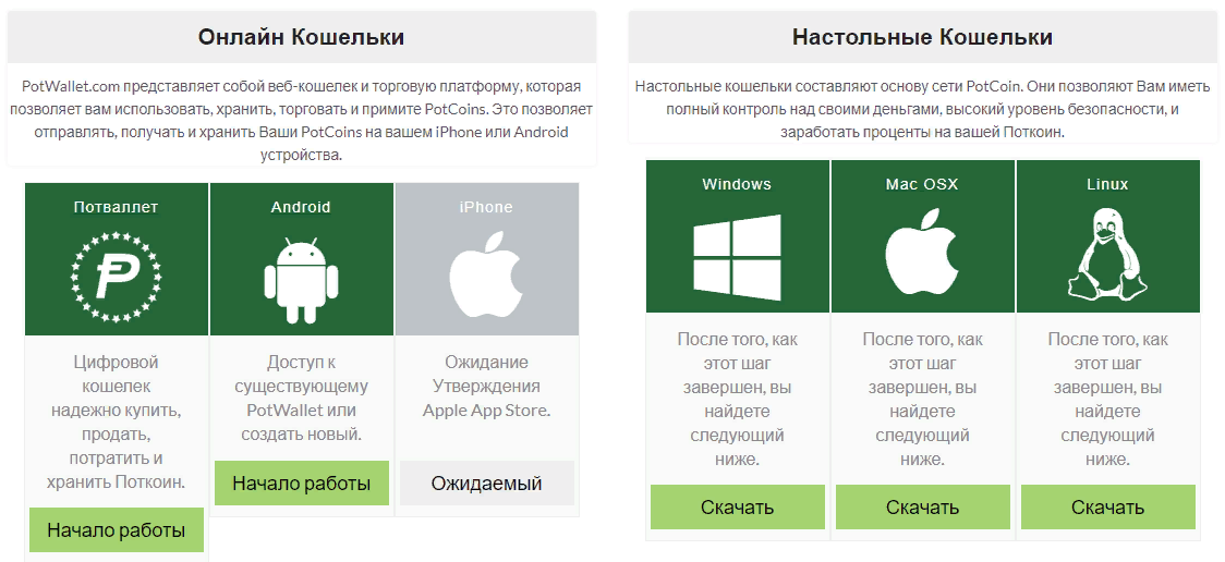 Для хранения монеты, можно использовать собственные кошельки PotCoin, как онлайн, так и настольные.