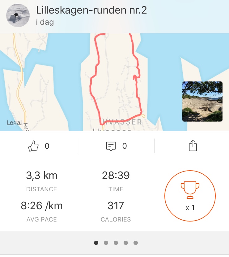 Here are my other stats from the run. Last time it registered the run as being 3,5 km, today 3,3. That’s weird..,