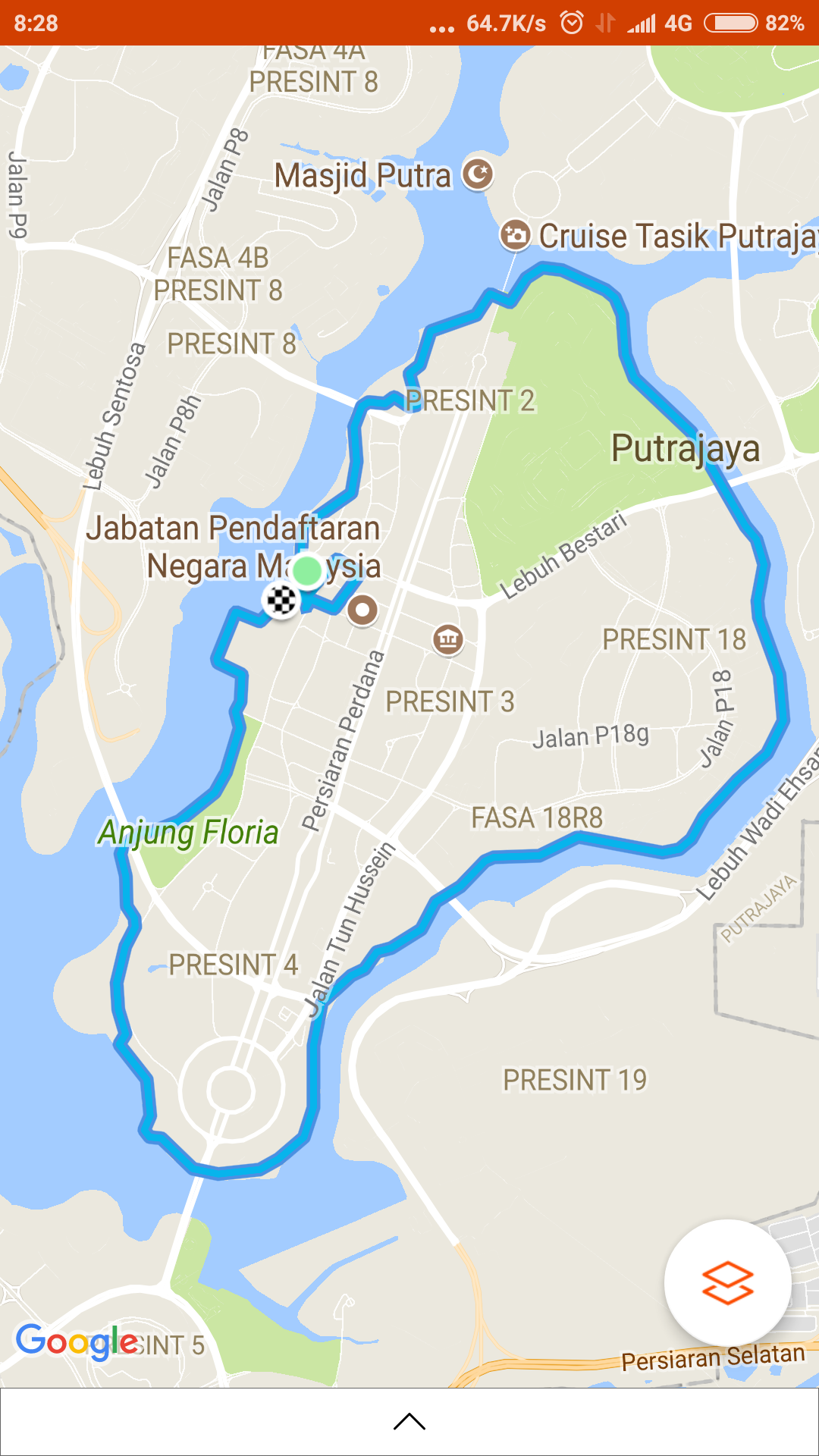 We started our run first and the chosen route was the usual standard and very flat 10.5km round the island of Putrajaya government and administrative offices.