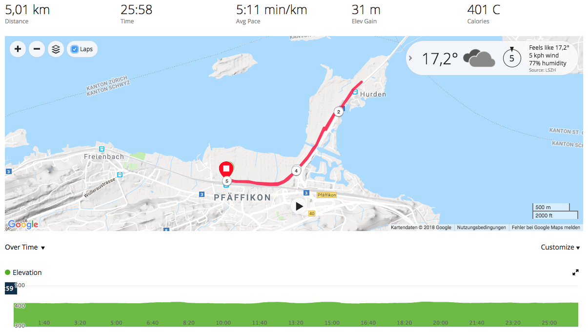 Nice run, a typical first run of the week one, tick the box, nothing special, but as we were alright I finished with a 'sprint' in the end, focussing on my cadence and even pushed it to a high of 225 spm and with that I finished my last kilometer below 5 minutes for the 1 kilometer. In terms of pace, this is one of the fastest ones yet and I think the little sprint in the end also helped me as I felt really energised afterwards.