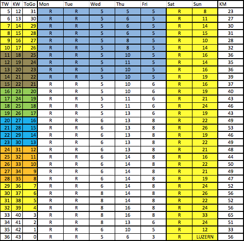 - Goal: First day of 3 in a row to get used to running on tired legs