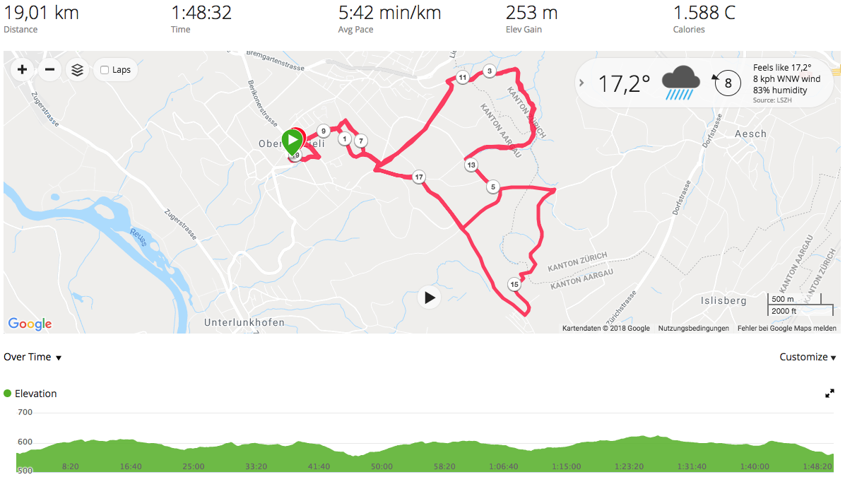 Alright, I admit it, it is stupid to focus on uphill cadence when you first have to get used to the warm weather, I underestimated that! The first run in the warmth is always a challenge and I had to run at a different time as well due to a busy schedule during the day.