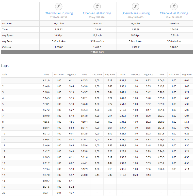 Here are my 4 longest runs in comparison with one another: