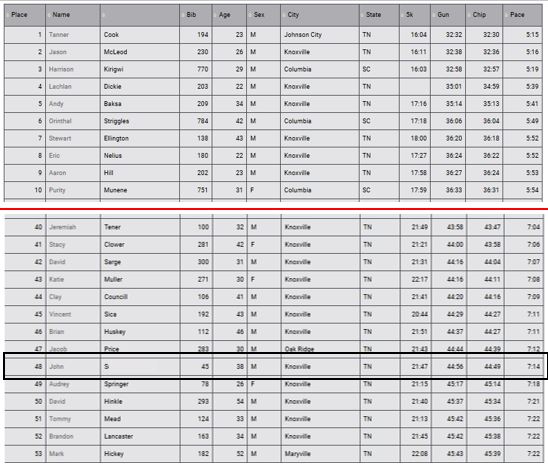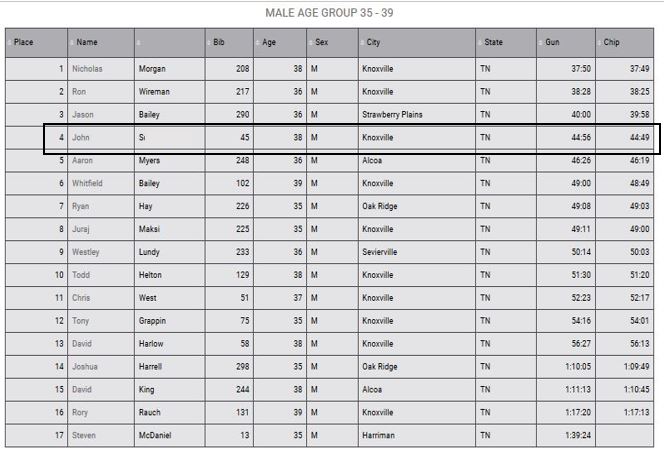 For my age group, I got 4th place out of 17 in the Male 35-39 group which wasn't bad.