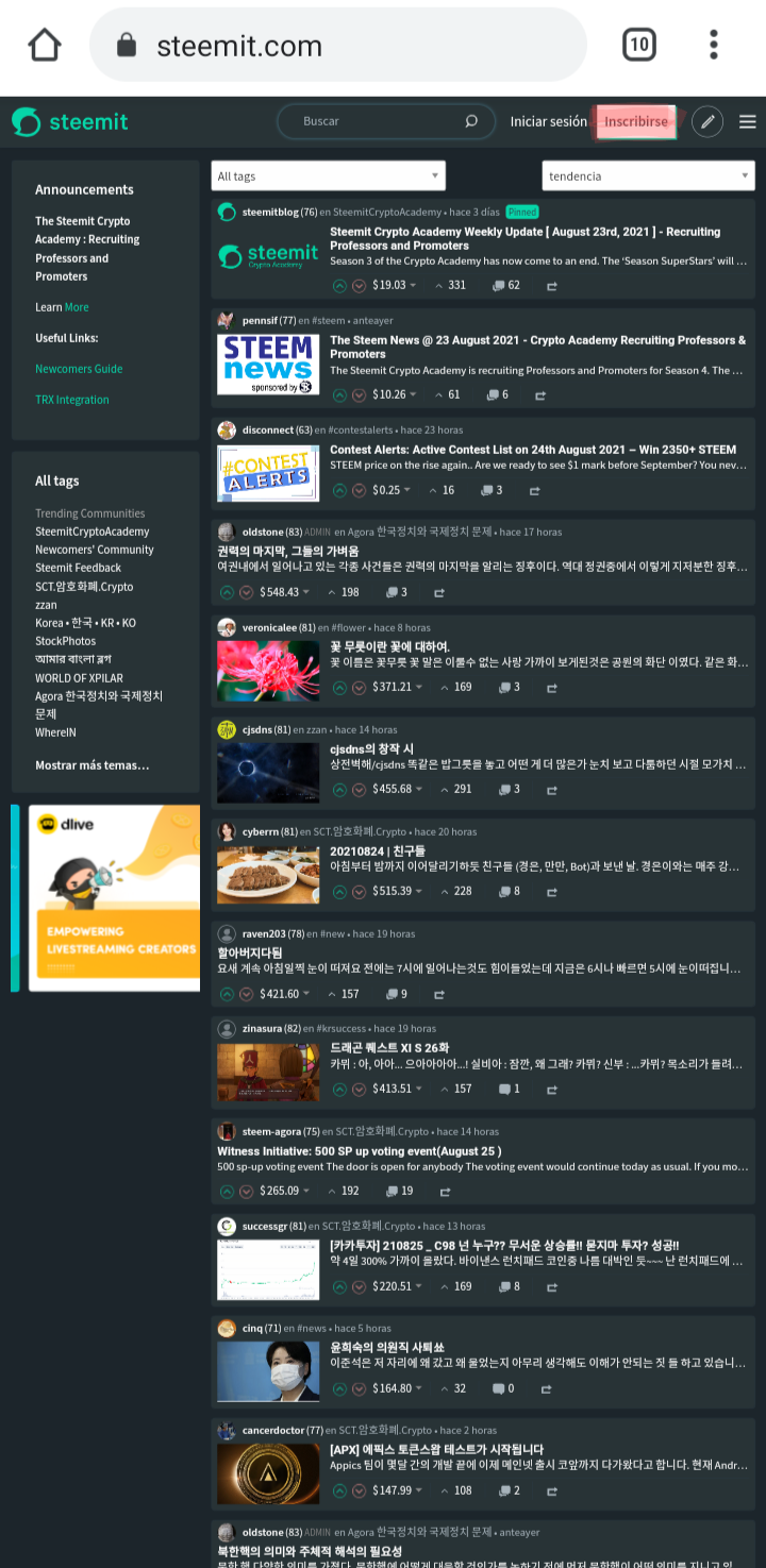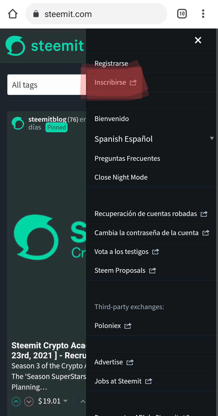 1- El primer paso en ubicar la opción de inscribirse, si se registra desde un celular lo encontrará por acá resaltado de color rojo: