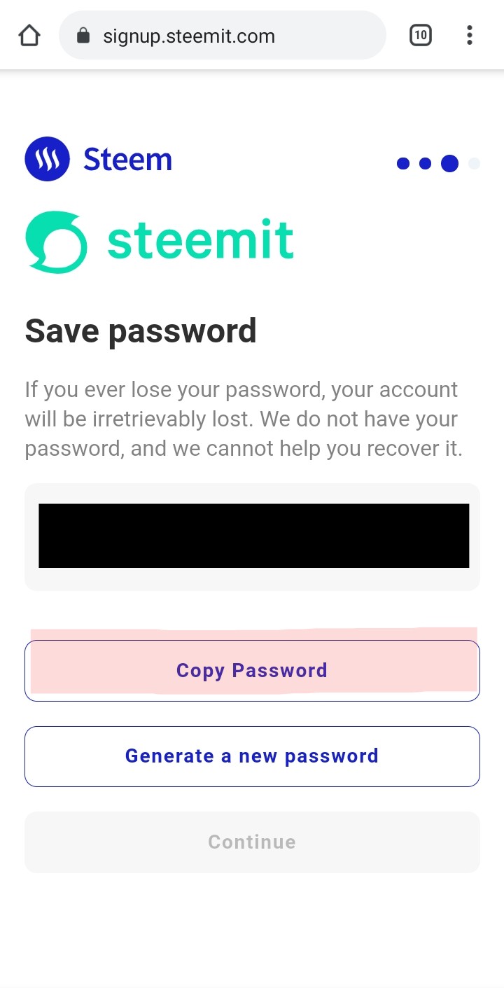 4- En este paso le darán una clave que debe guardar celosamente ya que está clave será inreemplasable, al pulsar la opción "copiar contraseña" podrá continuar.