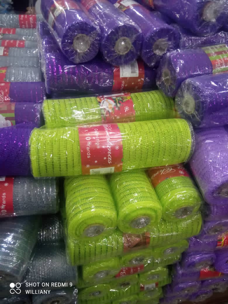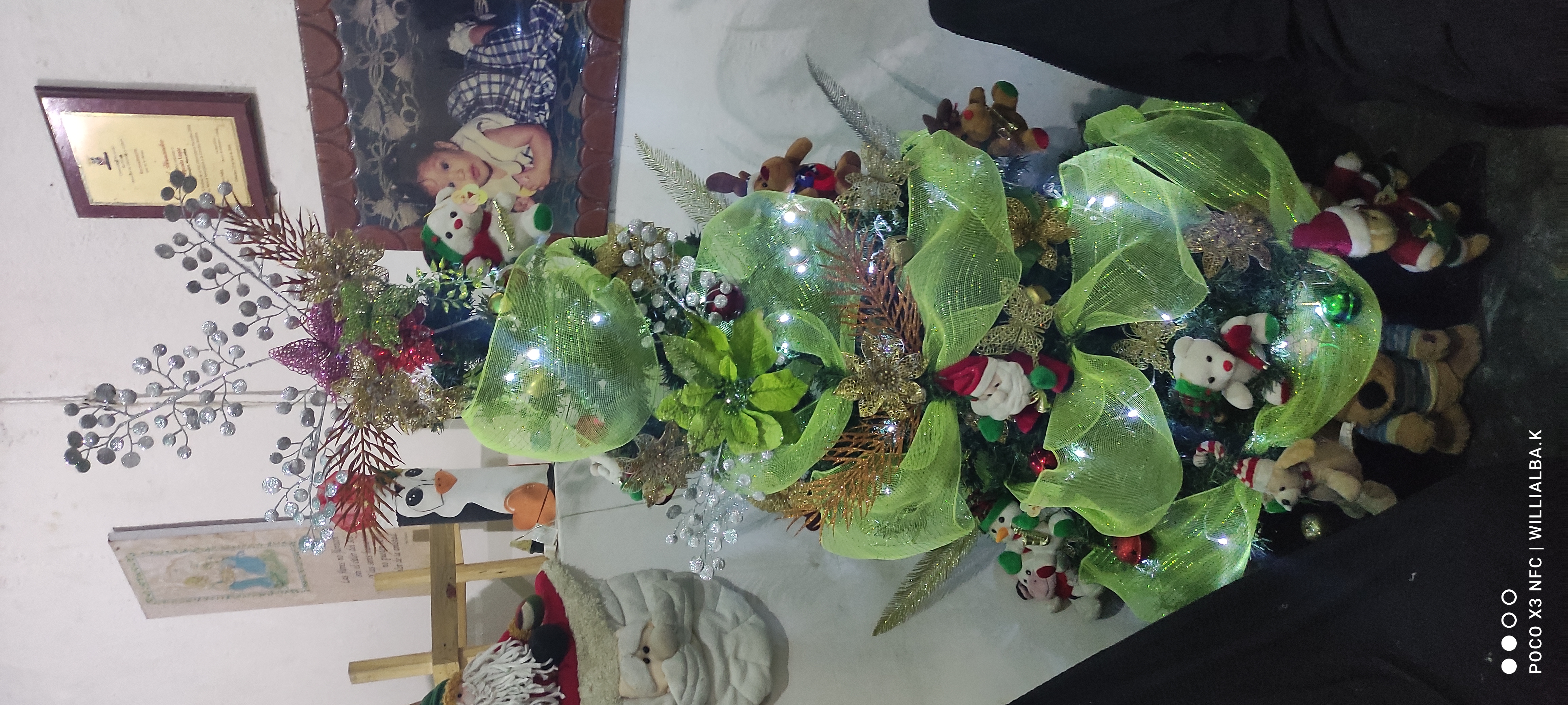 Ella me mandó fotos a mi teléfono sobre las cosas que estaba averiguando los arbolitos de verdad eran muy hermosos pero estaban súper elevado el precio y salía de nuestro presupuesto entonces decidimos escoger algunas mayas para la decoración y unas que otras espigas de colores plateada y las respectivas luces.