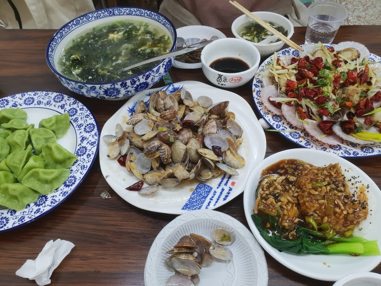 가장 맛있었던 것은 오른쪽 위의 가리비찜. 마라의 맛과 기름의 고소함이 조화로웠다. 만두피도 일반 만두와 다르게 두꺼워서 되게 쫄깃했다.