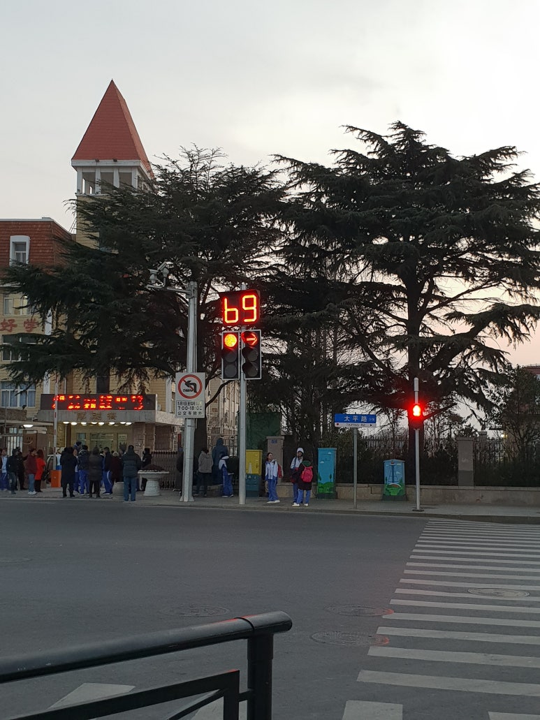 내가 간 곳은 기린 테마의 카페였는데 나름 귀여웠다. 간단하게 케이크 한조각과 홍차를 마시고 다시 저녁을 먹으러 일어났다. 칭다오의 길을 걸을 때마다 놀랐던 것이 있는데 그건 바로 신호등의 크기였다.
