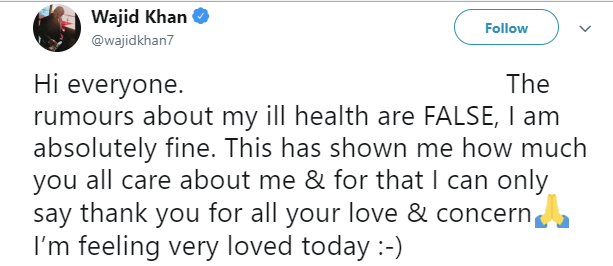 अस्पताल ले जाया गया उनकी तबीयत काफी खराब है इस तरह की बातें चल रही थी उनको कुछ बीमारी को लेकर उनकी कुछ स्वीट में हॉस्पिटल में चल रही थी यहां तक तो ठीक है मगर कुछ ज्यादा ही सोशल मीडिया पर यह चीज वायरल हो गई उसके बाद पर सोशल मीडिया पर बस यही खबर चल रही थी जैसे ही खबर वाजिद खान को