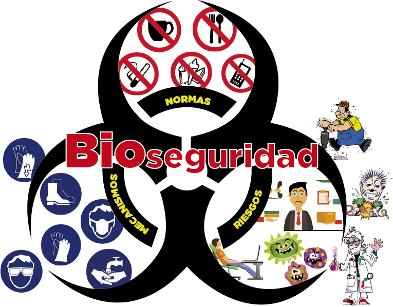 Como ven en la imagen hay Normas, Mecanismos y Riesgos que gira alrededor de la Bioseguridad.
