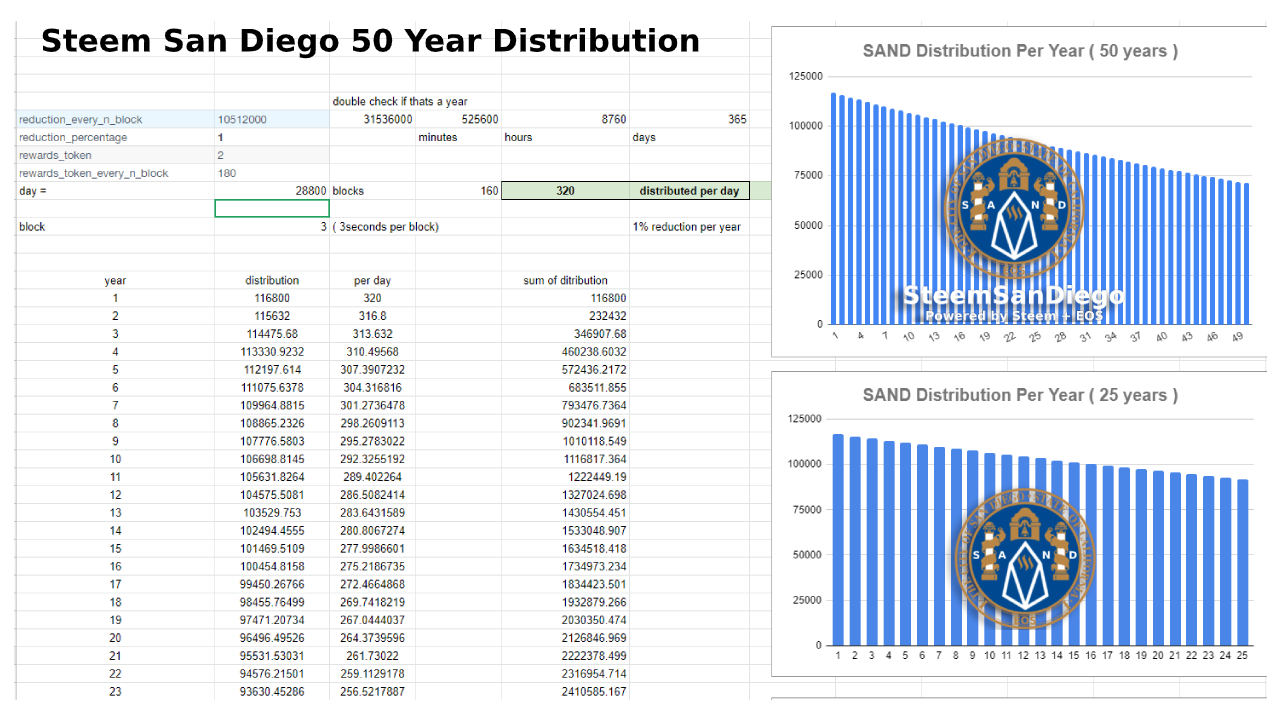 San Diego Coin 50 year distribution Chart (Thanks to @gerber from Steemleo discord for creating this data for me AND helping me setup SAND SCOT tribe)