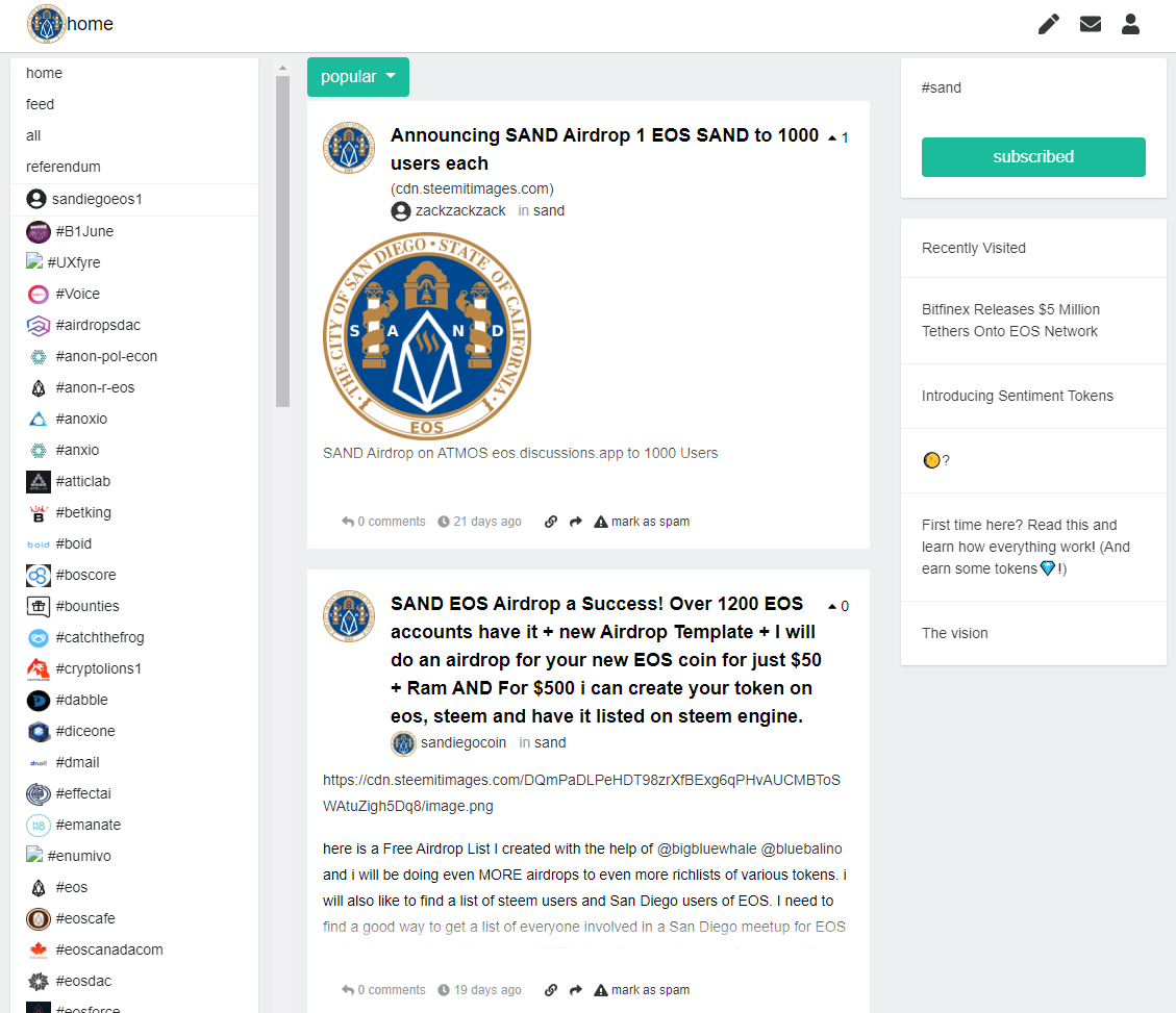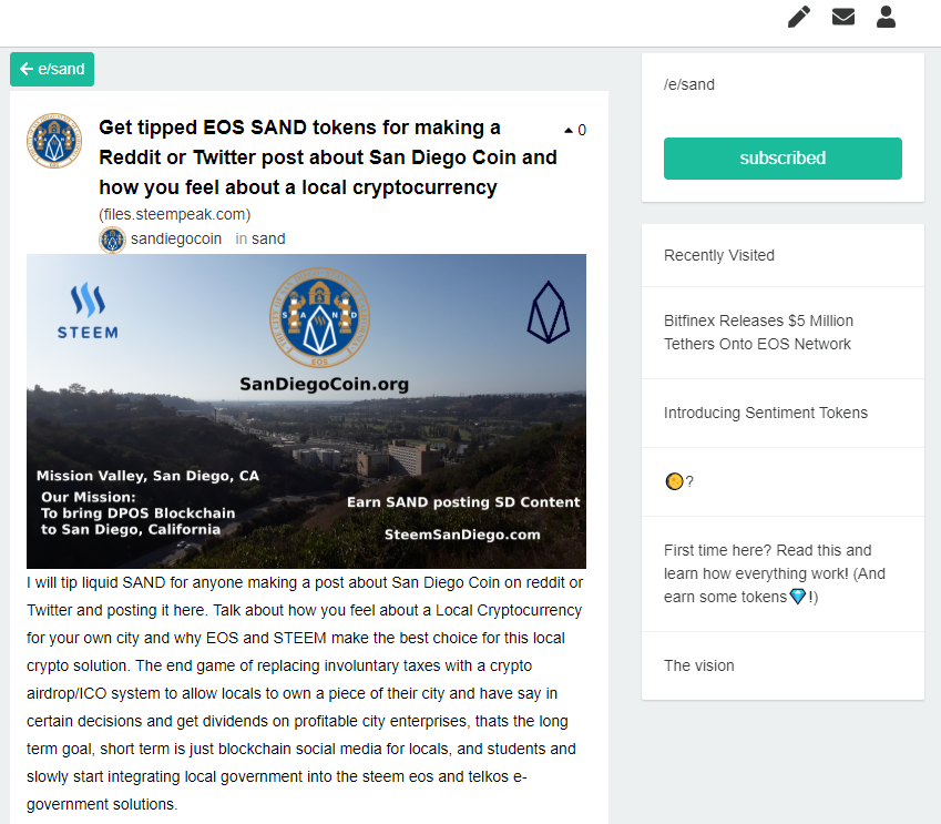 Earn EOS SAND tips making posts with your EOS account on eos.discussions.app