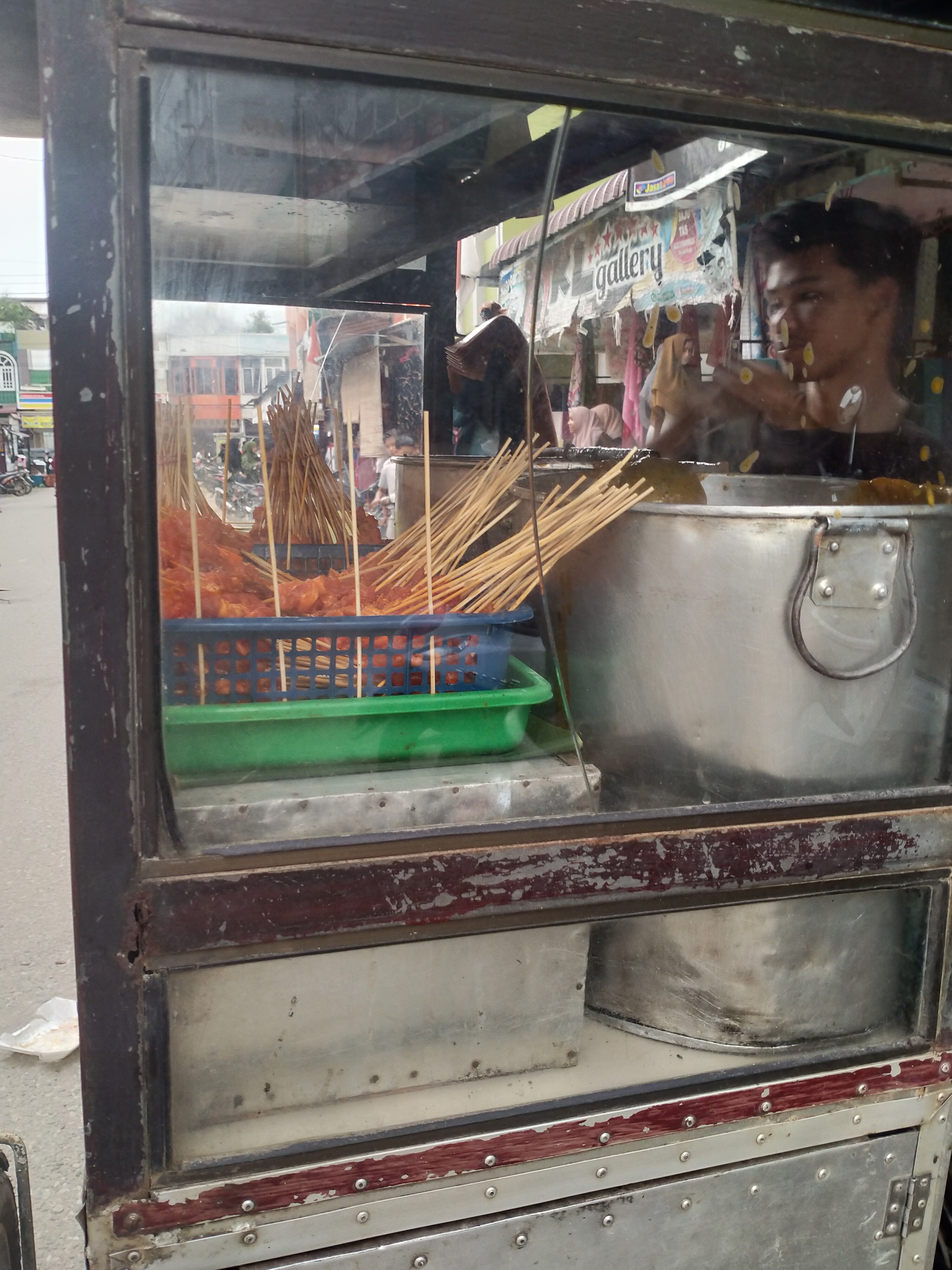 Cemilanputra-aceh (61)in #sate • 4 years ago Pedagang sate kambing jalanan, Gerobak sate yang di parkiran jalanan menjual sate..
