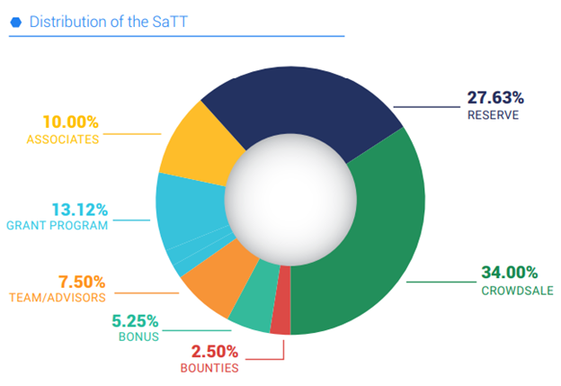 The project team conducts the initial placement of tokens - SaTT. They will be used for internal operations within the platform.
