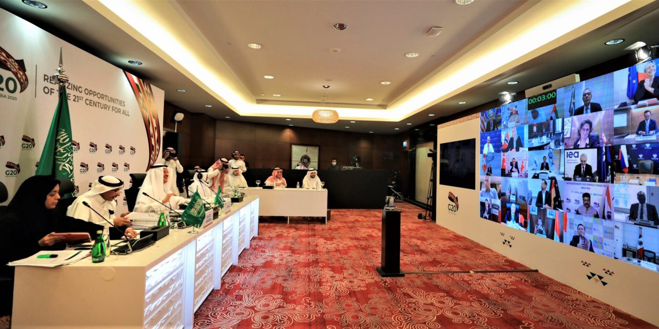 Prince Abdulaziz bin Salman Al Saud, Minister of Energy of Saudi Arabia, chairs a virtual summit of the Group of 20 energy ministers in Riyadh, Saudi Arabia, April 10, 2020 (Saudi Energy Ministry via AP)