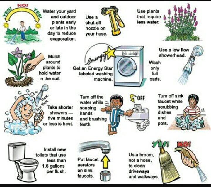 1.Turn of tap while brushing you teeth. Studies says Water comes out of fauket 2.5 gallon per minute. So think how much water we conserve just by turn of tap while brushing.