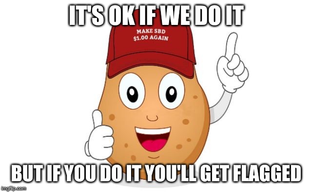In addition one of my points is that each of the burn posts and SBDpotato posts are copied and pasted with only the date or post # changed. You are attentive and smart enough to see what I'm talking about correct? You guys routinely flag users for this very sin yet have turned a blind eye to these posts since they are above the "law". And I wrote all of this in my post so your reply is quite confusing(which would have not gotten your attention had I not abused a bidbot so I don't care about the flags or profit). In any event, just because they are doing something that is intending to help STEEM they are also making the trending page look like a Potato Cooking fest with images of Mr Potatohead and flames possibly doing more harm since the optics are terrible. Perhaps we can all collaborate with these burn posts and offer them different artwork, add new text which maybe highlight different minnows,maybe some fresh content.Maybe perhaps have it be a burn post without having to advertise it as such so the trending page doesn't embarrass us.