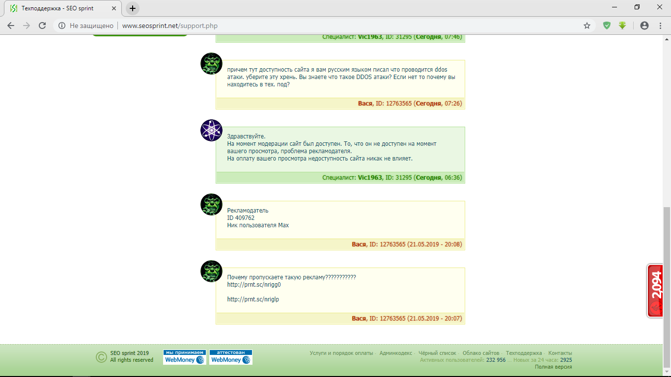 There is such a project as seosprint. Not only are there not adequate admins on it, and there is also a DDOS attack. When they point out that they are just stupidly banned you. They may not pay for tasks or worse, they may simply not let you withdraw from the project. So you are working on a project, but here you have picked up viruses from the project and did not pay. Who wants to can check my words in practice here is a link to the project http://www.seosprint.net/