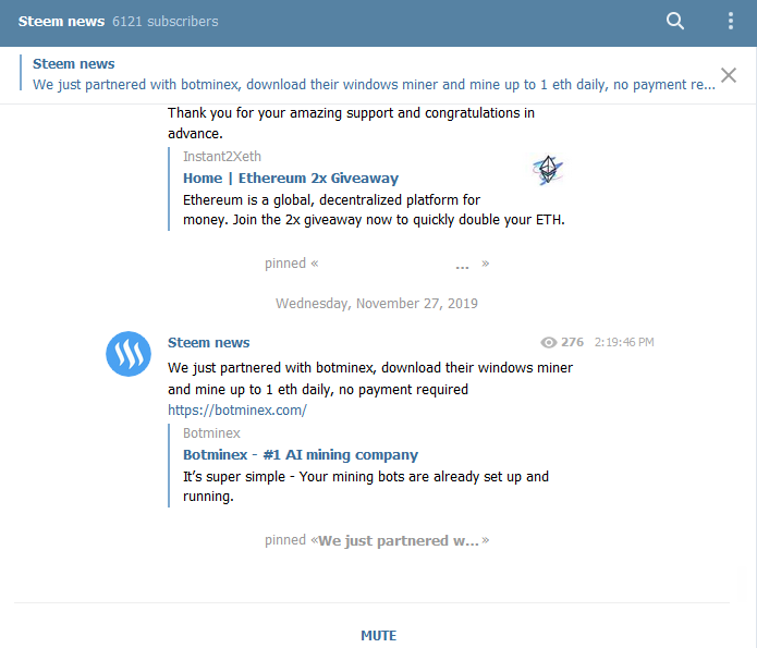 The Airdrop scam requires a person to register for Airdrop in the bot. The registration requires emails, ethereum address, at times, Twitter accounts and a compulsory referral of five other persons without which there would be no reward. Bot scams end with participants been unable to send messages in the group chat as to warn other persons of the scam.