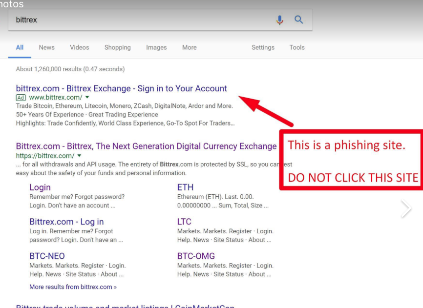 Today I have found a Scam lying in the eye of my Bittrex searches in Google.ย