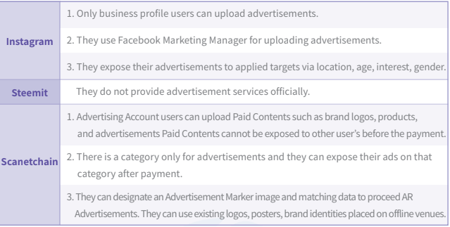 Comparison Scanetchain with Other Social Network Services on Advertising