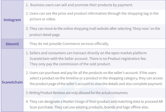 Comparison Scanetchain with Other Social Network Services on Commerce