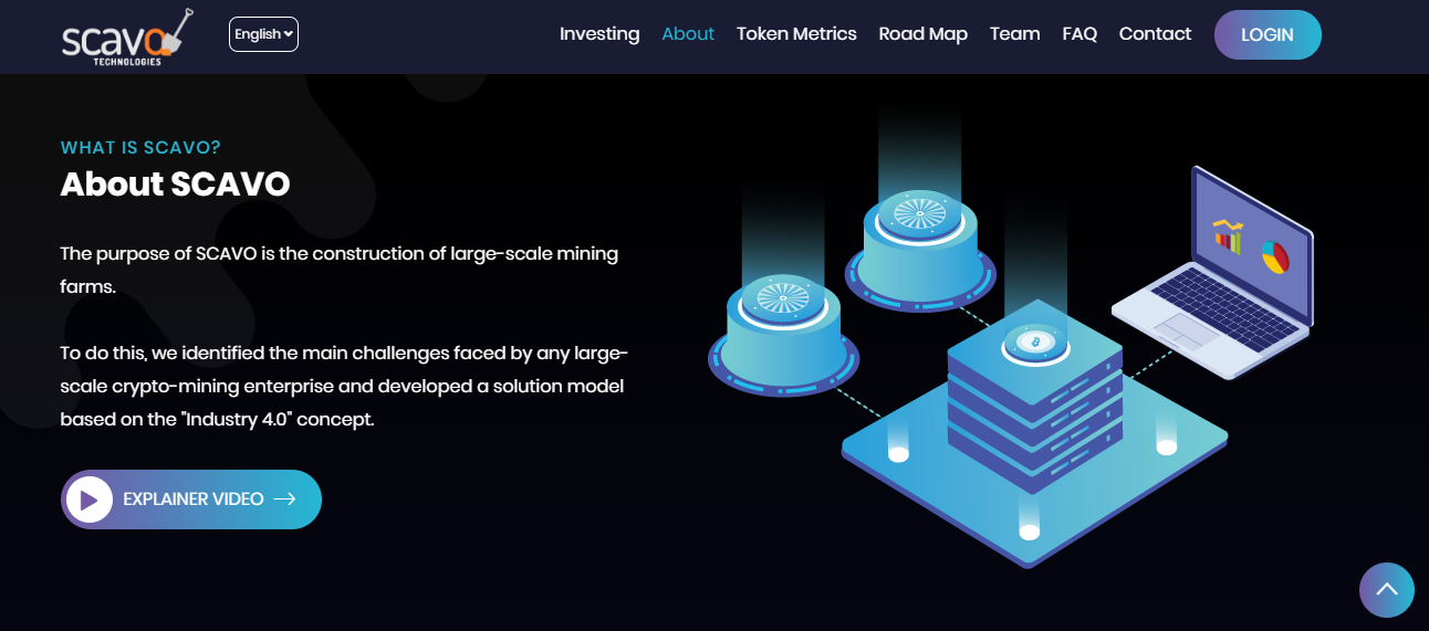 - Crypto mining requires plenty of expensive energy. SCAVO offers a cost-effective energy supply. It's a must-have tech for all crypto-mining facilities. SCAVO uses the concept of Industry 4.0. This is a hybrid solution capable of powering a single crypto-mining farm. It is based on renewable energy sources that significantly reduce energy costs almost to zero;