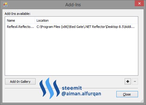 After downloaded the tools and applications we need, then I will explain how to add plug-in/add-ins into the application. NET Reflector.