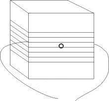 Draw a line like this on a cardboard box. Determine the midpoint (for the nail hole later).